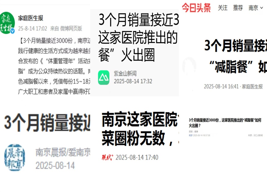 考虑到减脂餐易变质的特性,医院食堂严格执行 “上午现制现售” 制度,并采用预订销售模式,根据预订数量精准备餐。这样既最大限度地保证了减脂餐的新鲜口感,又从源头避免了食物浪费,受到大家的一致好评。现代快报、紫金山新闻、新浪微博以及家庭医生报等多家主流媒体纷纷对医院的减脂餐服务进行了报道,称赞其为推动健康饮食、践行科学减重理念的创新举措。媒体的报道进一步扩大了医院减脂餐的影响力,不少患者及家属也前来咨询购买。医护人员表示,新鲜健康、专业配比的减脂餐为繁忙工作中的健康管理提供了便利。患者及家属则认为,科学营养配餐体现了医院的人文关怀,特别对于需要减脂餐的患者来说是一项利好。