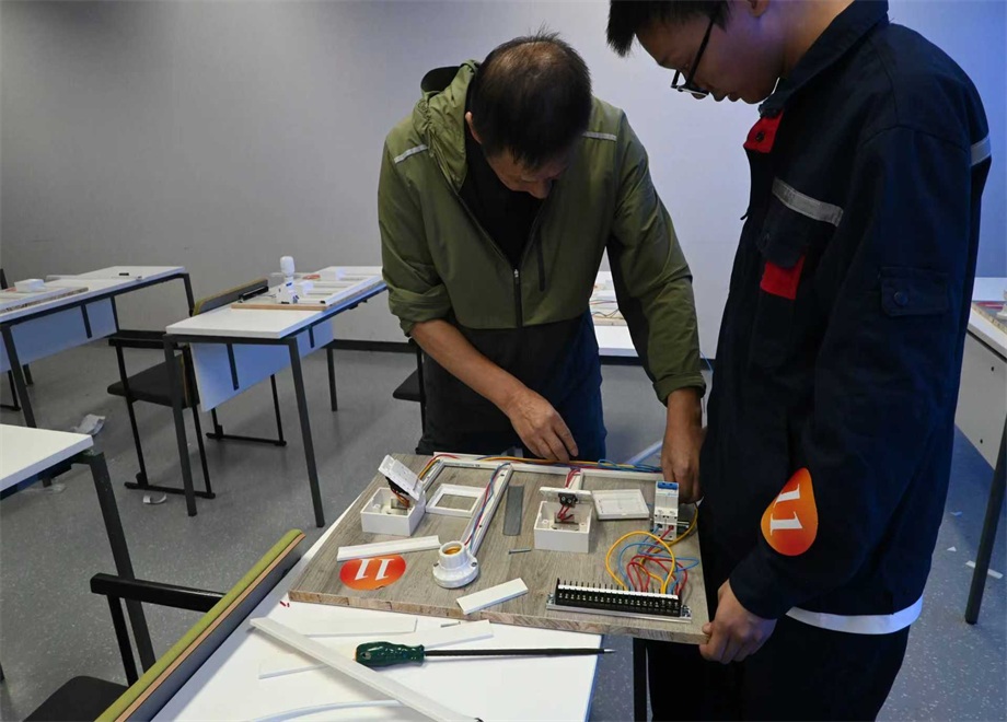 电工组、水暖组参赛人员进行电工组的电能表、插座、照明系统的安装与接线以及水暖组的PPR管路制作维修技能竞赛项目。竞赛过程中,各组参赛人员全神贯注,娴熟运用专业工具,严格遵循操作规范,展现出扎实的实操能力与严谨的工作态度,现场氛围紧张而有序。