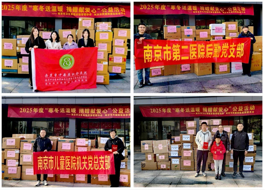 12 月 6 日上午 8 点 30 分开始,南京市第二医院的捐赠现场已一片暖意融融。承载着爱心物资的车辆陆续驶来。此次捐赠活动得到了会员单位及相关企业的积极响应,南京市中西医结合医院、南京市第二医院、南京妇幼保健院、南京市第一医院、南京市急救中心、南京市儿童医院、南京市红十字医院、南京脑科医院、南京市高淳中医院、南京市红十字血液中心等 10 家医疗单位,以及爱玛客服务产业(中国)有限公司、上海益中亘泰(集团)股份有限公司 2 家企业共计 12 家单位踊跃参与,用实际行动诠释着 “大爱无疆”。