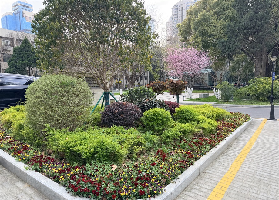 后勤管理处联合养护单位根据不同花卉的生长习性,量身定制养护方案,从杜鹃的修剪整形、海棠的浇水施肥,到月季的病虫防治、紫薇的枝条梳理,及时清除杂草、补植幼苗,细致排查植物的生长状态,确保绿植长势良好、花卉如期绽放,让春日的院区始终保持整洁雅致、生机蓬勃的风貌。