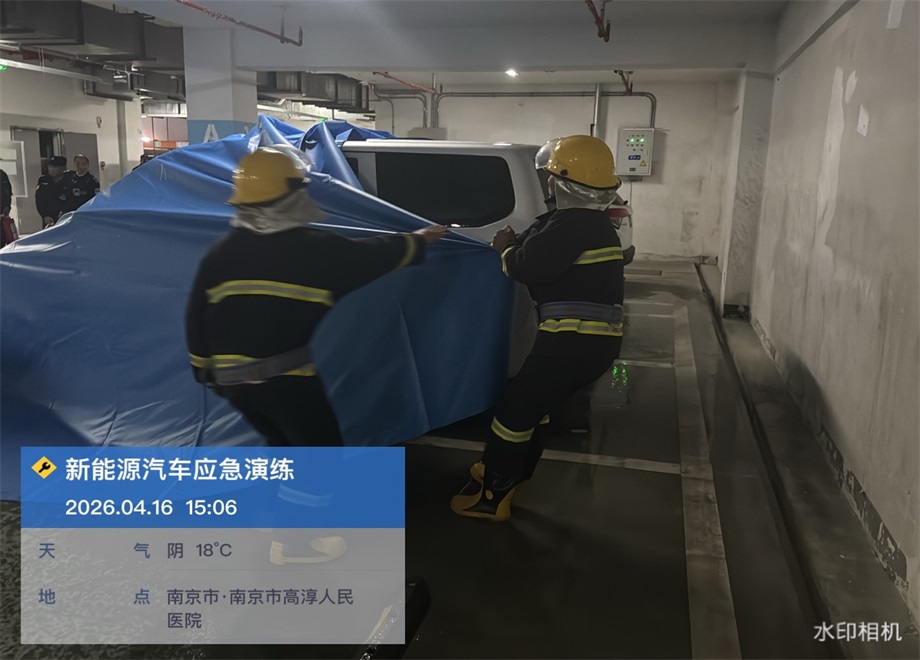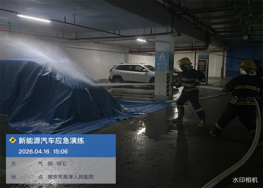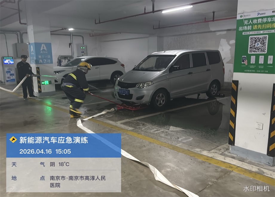 为进一步强化医院地下停车场消防安全管理,提升新能源汽车突发火灾事故的应急处置能力,筑牢院区安全防线,2026年4月16日下午,南京市高淳人民医院在南扩地下停车场组织开展新能源汽车火灾应急实战演练。