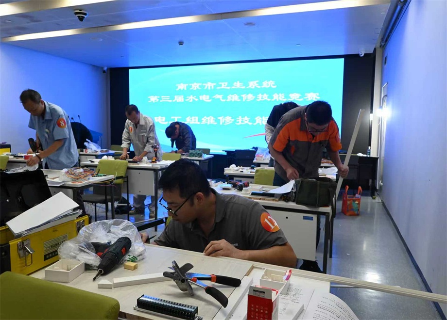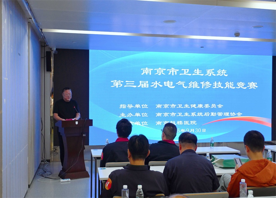 2025年9月30日下午,由南京市卫生健康委员会指导、南京市卫生系统后勤管理协会主办、南京鼓楼医院承办的南京市卫健系统第三届水电气维修技能竞赛在南京鼓楼医院会议中心隆重举行。本次竞赛共有18家会员单位报名,35名维修人员参加专业理论考试、电工组维修技能竞赛、水暖组维修技能竞赛。各参赛单位后勤负责人及协会领导也莅临现场指导,体现了协会及会员单位对后勤维修专业技能竞赛的高度重视和支持。