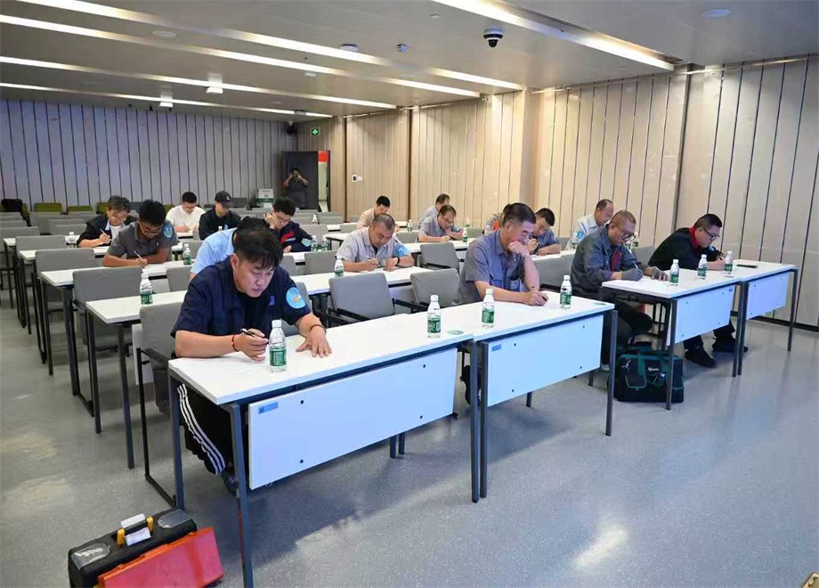 电工组、水暖组参赛人员沉着冷静、有条不紊地进行专业知识、安全规范方面的专业理论考试