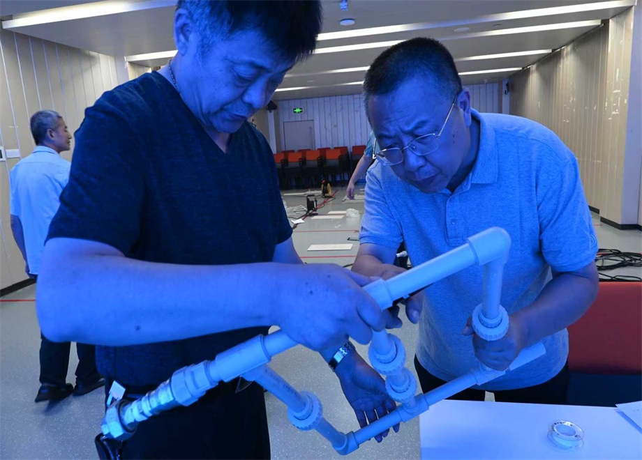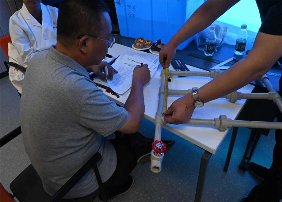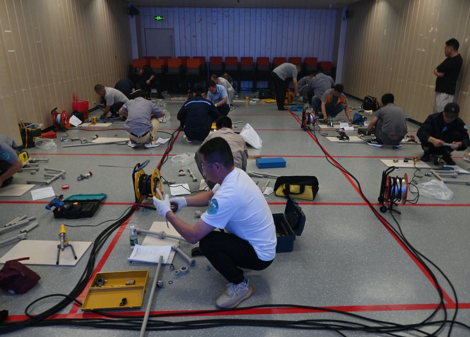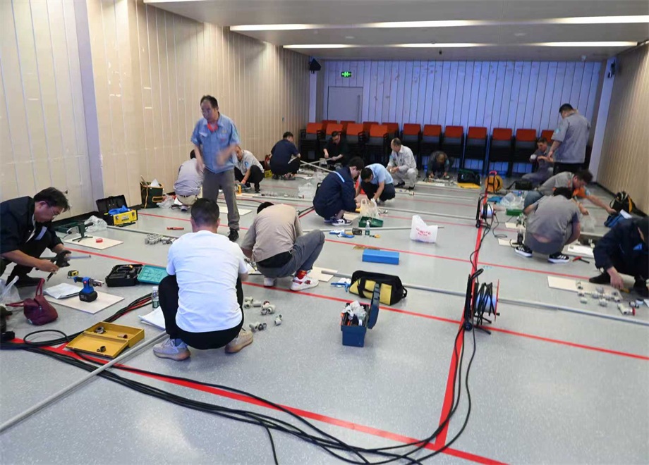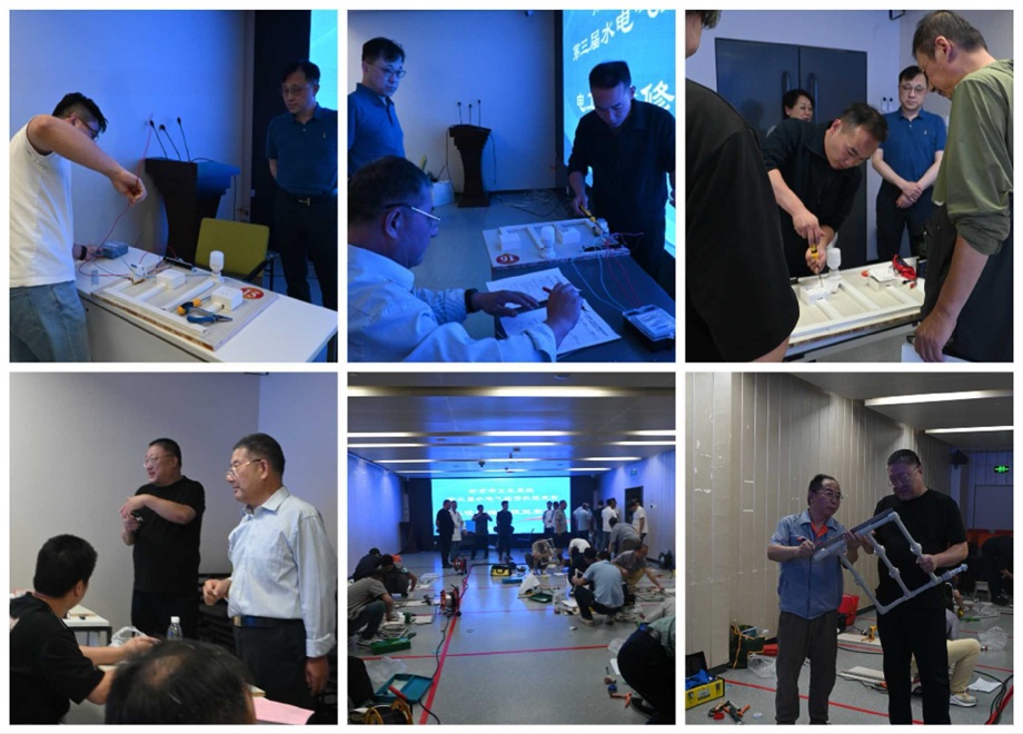电工组、水暖组参赛人员进行电工组的电能表、插座、照明系统的安装与接线以及水暖组的PPR管路制作维修技能竞赛项目。竞赛过程中,各组参赛人员全神贯注,娴熟运用专业工具,严格遵循操作规范,展现出扎实的实操能力与严谨的工作态度,现场氛围紧张而有序。