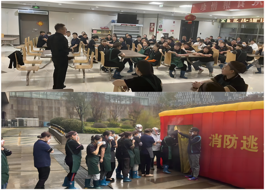 11月6日,总务处牵头召开重点用电科室工作联席会议,围绕重点区域用电安全管理、消防宣传月重点任务部署等内容进行专题研讨,进一步压实科室主体责任,强化安全风险防范措施。11月7日,安全保卫处联合膳食中心开展消防知识培训及应急疏散演练。正式演练开始前,首先为全体参与者进行了系统的消防安全培训,并模拟真实火场情境,组织人员迅速、有序地从食堂撤离。随后的疏散演练中,全体参训人员从食堂有序转移至医院下沉式广场。安保处在现场搭建模拟逃生屋,参与人员佩戴防烟面罩,在烟雾模拟环境中体验火场逃生流程,现场操作消防器材,有效增强了应急处置能力和避险意识。11月9日,安全保卫处在门诊大厅组织消防科普宣传活动,现场展示灭火器、防烟面罩、消火栓组件等消防器材,并由专人进行使用方法讲解,鼓励近距离观摩,吸引了众多患者及家属驻足咨询。