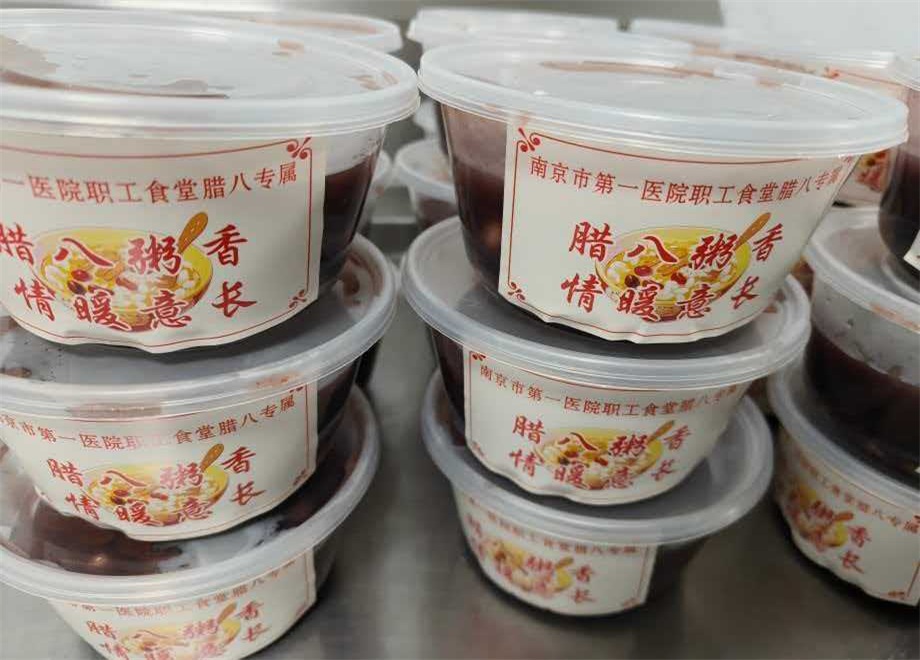又是一年腊八节,过了腊八就是年。腊八节,一个充满传统韵味的节日。清晨,南京市第一医院食堂一片忙碌,师傅们正忙着熬制腊八粥。糯米、花生、红枣、红豆、莲子……各种精心挑选的食材,加上慢火细熬,香甜可口的腊八粥就出锅了。 腊八粥作为中国节令小吃,营养丰富,可以温胃助阳,散寒暖肾,是一种极好的冬令食疗佳品。