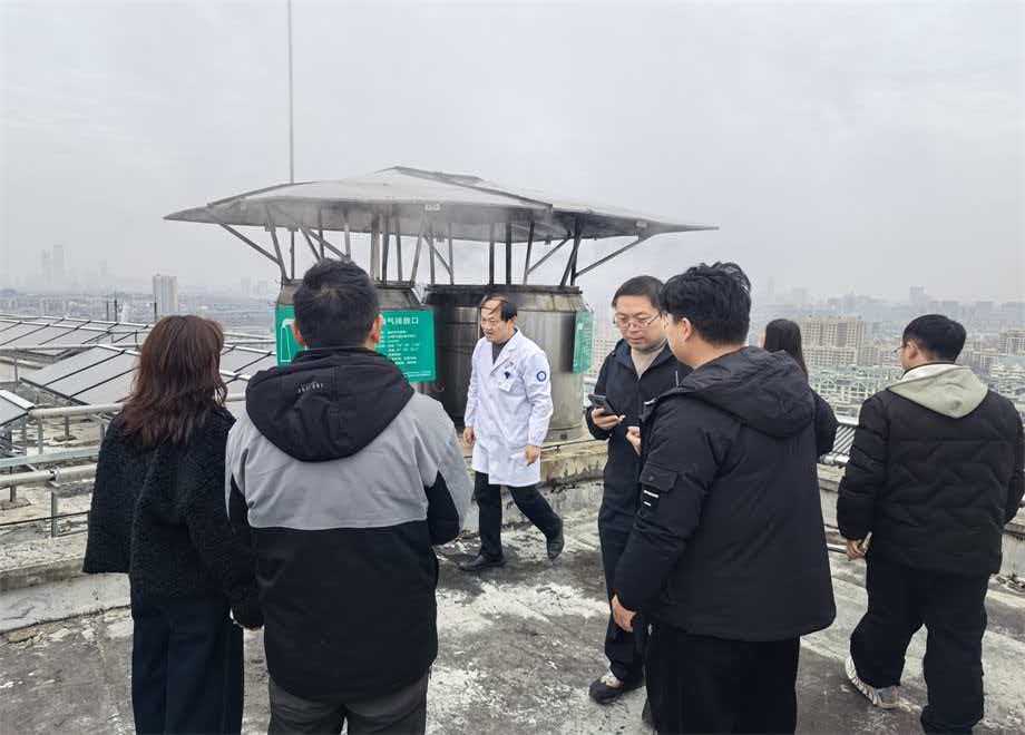 随后,来访一行前往住院B楼顶锅炉废气排口现场,对排气监测口的安装规范、监测点位设置、数据采集传输等工作进行全面踏勘,结合生态环境监测相关标准和要求,针对排口规范化建设、监测设备运维校准等关键环节提出专业、精准的指导意见和优化建议,为医院进一步规范环保监测设施管理、提升环保治理水平提供了专业支撑和实操思路。交流过程中,双方还就党建工作与环保业务、后勤运维工作的融合路径进行探讨,分享了各自在党建引领业务发展、基层支部建设等方面的经验做法。
