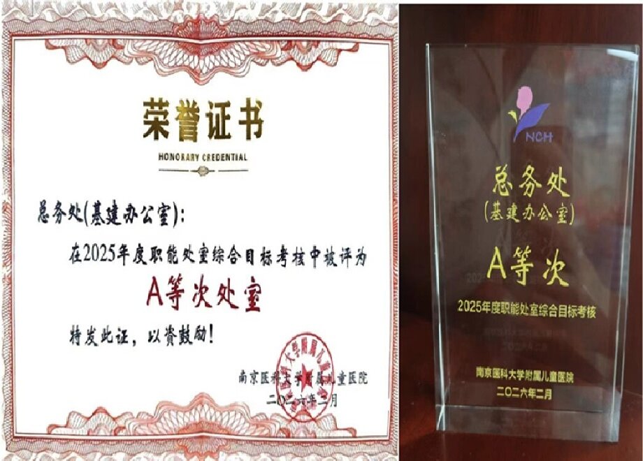 2026年2月10日,南京市儿童医院2025年度职能处室综合考核结果揭晓,总务处(基建办公室)凭借全年扎实稳健的工作、全面到位的服务保障与科学高效的内部管理,获评A等次处室,实现连续两年位居前列,为医院平稳运行与高质量发展提供了强有力的后勤支撑。