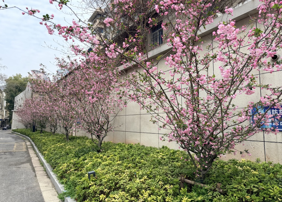 后勤管理处联合养护单位根据不同花卉的生长习性,量身定制养护方案,从杜鹃的修剪整形、海棠的浇水施肥,到月季的病虫防治、紫薇的枝条梳理,及时清除杂草、补植幼苗,细致排查植物的生长状态,确保绿植长势良好、花卉如期绽放,让春日的院区始终保持整洁雅致、生机蓬勃的风貌。